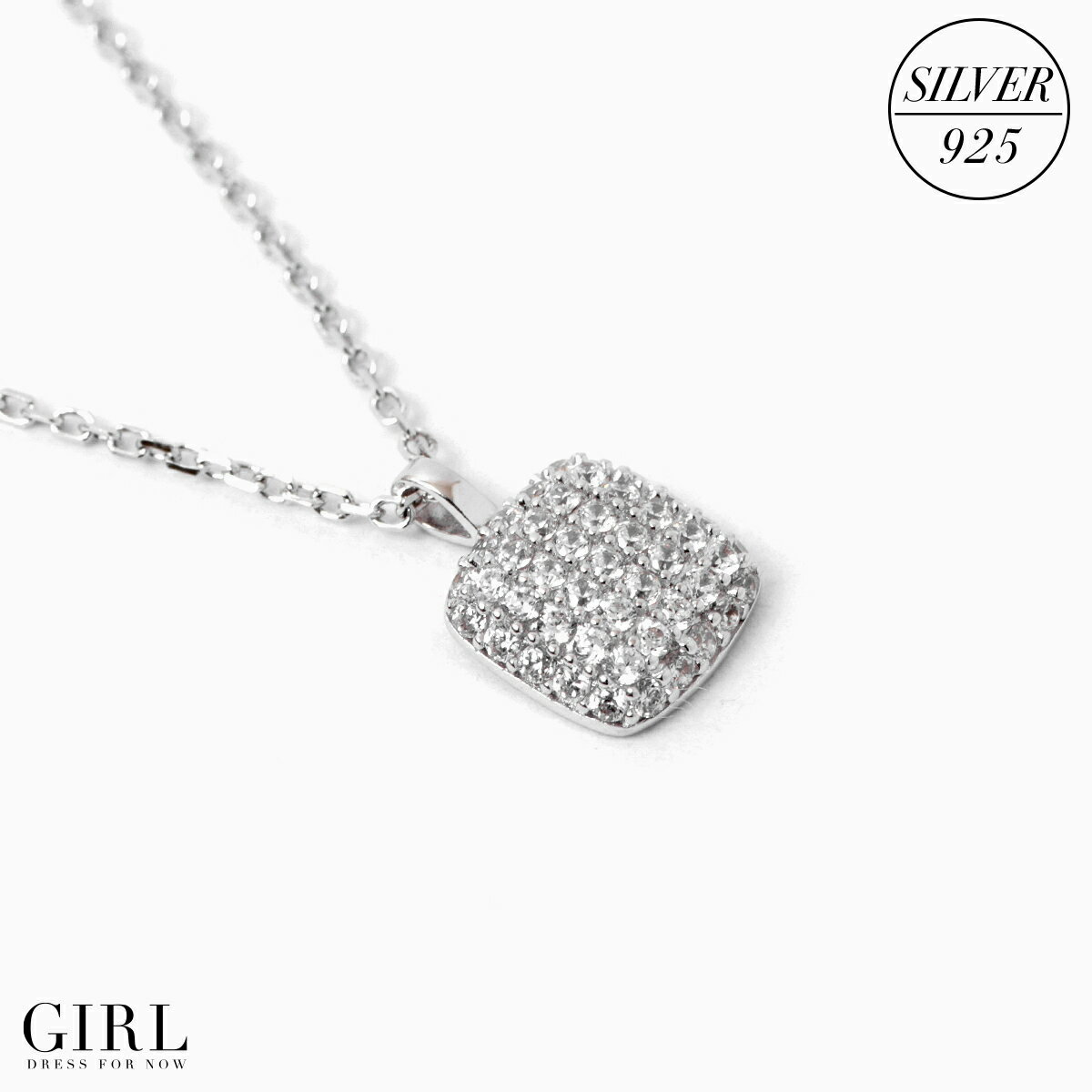 【メール便送料無料】ネックレス レディース シルバー925 チェーン シンプル 上品 大人可愛い 華奢 アクセサリー ジュエリー 結婚式 キラキラ パーティー パーティ フォーマル お呼ばれ 二次会 謝恩会 披露宴 オフィス 通勤 ラインストーン スクエア 春 夏 秋 冬