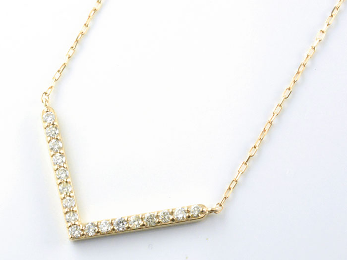 ネックレス ダイヤモンド Vラインネックレス レディース ペンダント k18 ブイネックレス イエローゴールド ダイヤ 18k 18金 pendant v 華奢 シンプル 記念 誕生日 スキンジュエリー