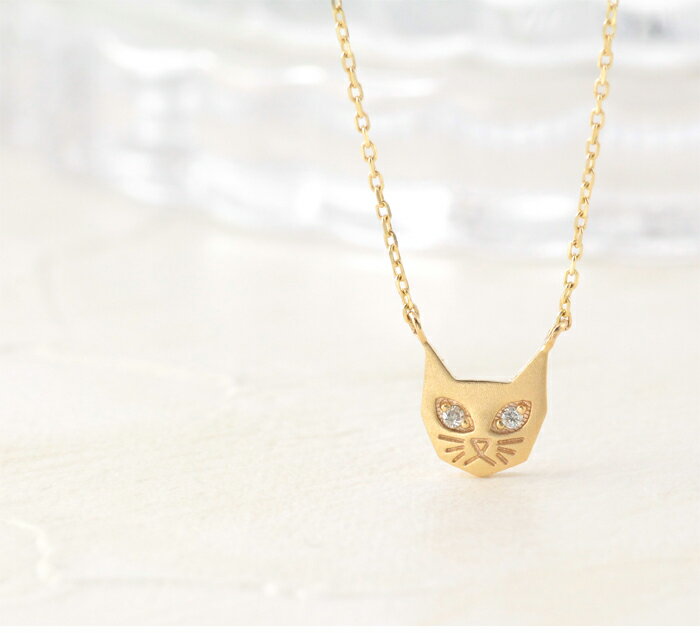ネックレス レディース ネコ 猫 ねこ cat k10 10k 10金 ダイヤモンド ゴールド イエローゴールド ピンクゴールド ホワイトゴールド シンプル 華奢 アニマル 猫好き かわいい トレンド アニマルモチーフ