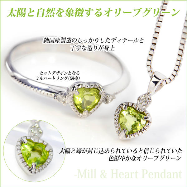 ペリドット 8月 誕生石 ネックレス ペンダントトップ 天然ダイヤ シルバー 925 SV925 4mm ハート ミルグランド 選べるチェーン 送料無料 fourm クリスマス 母の日 レディース メンズ 男性 女性 ラッピング 包装 袋 誕生日 プレゼント ケース 箱 華奢 可